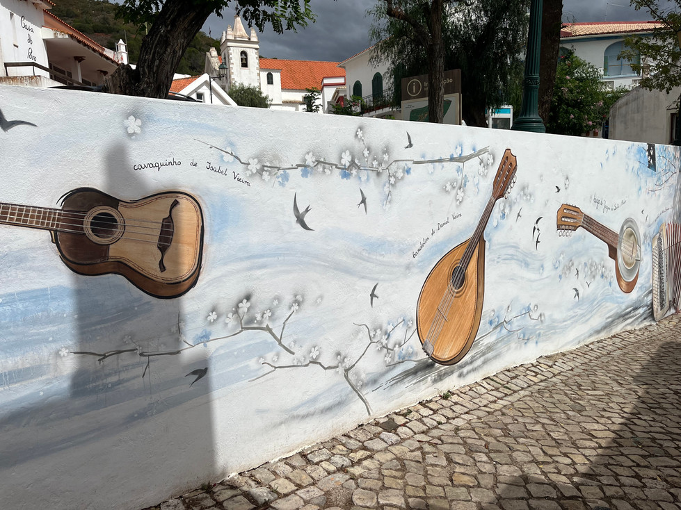 Alte is definitely off the beaten tourist path. It is home to artists of various kinds and their work is on display at every turn. Perhaps its most famous resident was Francisco Xavier Cândido Guerreiro, a 20th century post-symbolist poet. His statue and a few of his verses, displayed in azulejos, the ubiquitous blue tiles, can be found in a small park next to the Alte river that runs through the town. The Igreja Matriz de Alte church dates back to the 13th century although it was largely rebuilt three centuries later. Inside, its chancel is supposedly decorated with ornate altarpieces and azulejos depicting angels playing musical instruments, but unfortunately, the church was locked during our visit. The village is so quaint; we enjoyed strolling its narrow, twisty roads, exploring nooks and crannies, popping into local artisans' shops, sampling the local pasteis de nata (yum!), and marveling at the street art.