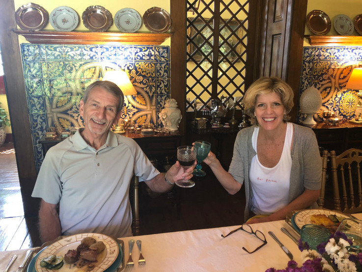 The third experience was an unexpected treat and one we highly recommend should you ever visit this area. Our travel agent arranged for half a day of "Cooking with the Countess" which, for someone as inept as me in the kitchen, was a little daunting. After navigating miles of narrow, windy back-roads, we arrived at the home of the countess of Várzea. The magnificent property on a 450-acre estate was once her family's summer home that she and her husband have renovated as a hotel. The countess, Maria, was so welcoming that we were immediately at ease and she shared her amazing riches-to-rags-to-riches life story (too long to capture here) that would make a terrific biographical book or movie. After a quick tour, we spent a couple of hours in the home's original 18th century kitchen (the hotel has a modern commercial kitchen) where she guided us through the preparation of a delicious three-course meal, including fresh-baked bread and crème brûlée, using only the original, log-fired cast iron stove and cookware. We then enjoyed the fruit of our labors in the family dining room. It was truly an amazing experience and great fun.