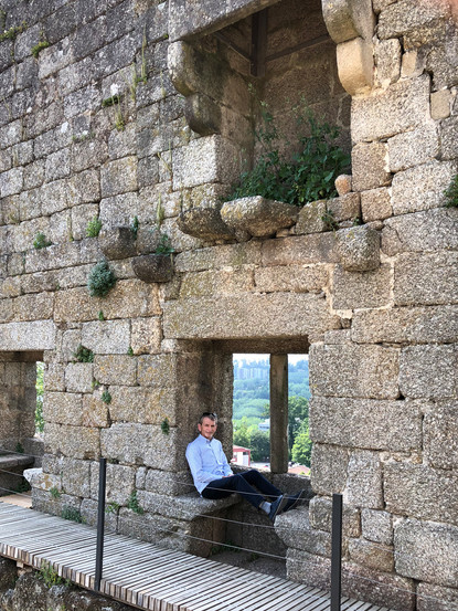 Guimarães is a small medieval town less than an hour's drive northeast of Porto. Once a very poor town, Guimarães has been renovated and rejuvenated, and is quite charming. We spent a day there, primarily to have dinner at the fine (Michelin star) restaurant, 'a Cozinha' ('the Kitchen'), that was highly recommended by our friend, Will Wynn, who knows the owner and chef, Antonio Loureiro. The meal was fantastic but we also had a very enjoyable day walking the cobbled streets and taking in the sights, including the remains of the Moorish castle -- one of many to be found in Portugal.