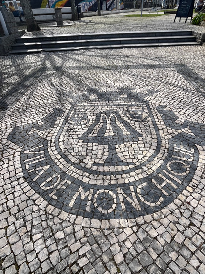 In our March of 2024 visit, we stopped briefly to walk around Monchique but our primary destination was the nearby village (aldeia) of Alferce. Using European development funds, a new boardwalk had been built there and inaugurated just a few months earlier. It was a beautiful, clear day and the temperature was about 22°C (72°F), perfect for an easy hike. We arrived at the trail head, had a picnic lunch, and then embarked on the hike down the trail to the start of the boardwalk. Its wooden steps skirted one side of the Barranca do Demo and led to a pedestrian rope bridge over a lovely mountain stream. (Only five people are allowed on the bridge at a time, and apparently, you must not cross on your head.) The steps continued up the other side to a lookout -- a total of 563 steps, one way. Besides the dramatic mountain vistas there was nothing else to see; the boardwalk itself was the destination.