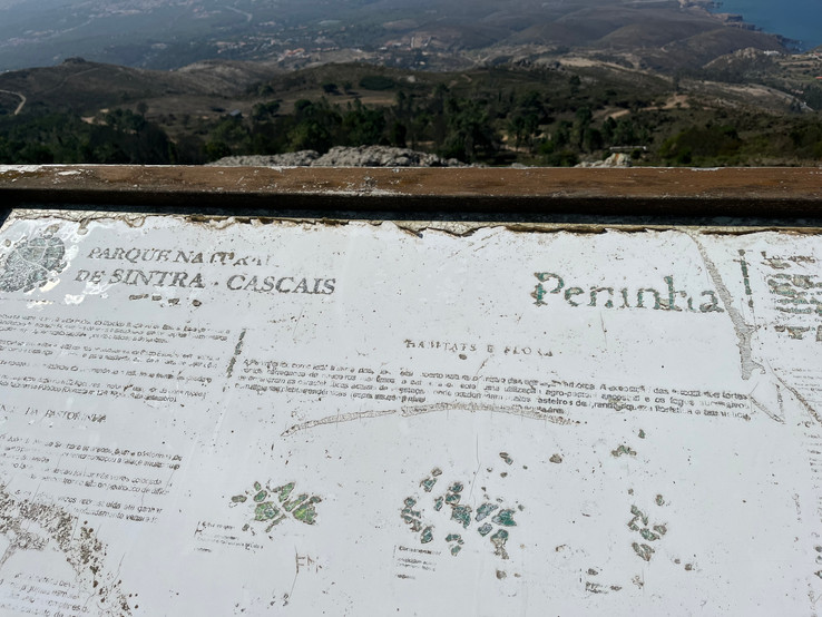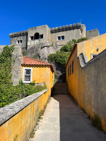 High up the Sintra mountain range is an early 20th century palace known as the Sanctuary of Peninha (meaning: small rocky outcrop). It is an ugly structure, frankly, and so it is surprising that it was built by António Augusto Carvalho Monteiro, the same "Monteiro the Millionaire" who built the amazing Quinta da Regaleira in the town of Sintra (see blog: Sintra - Part 2). It was never completed and changed hands a few times. It is now owned by the state and there are plans to renovate it.